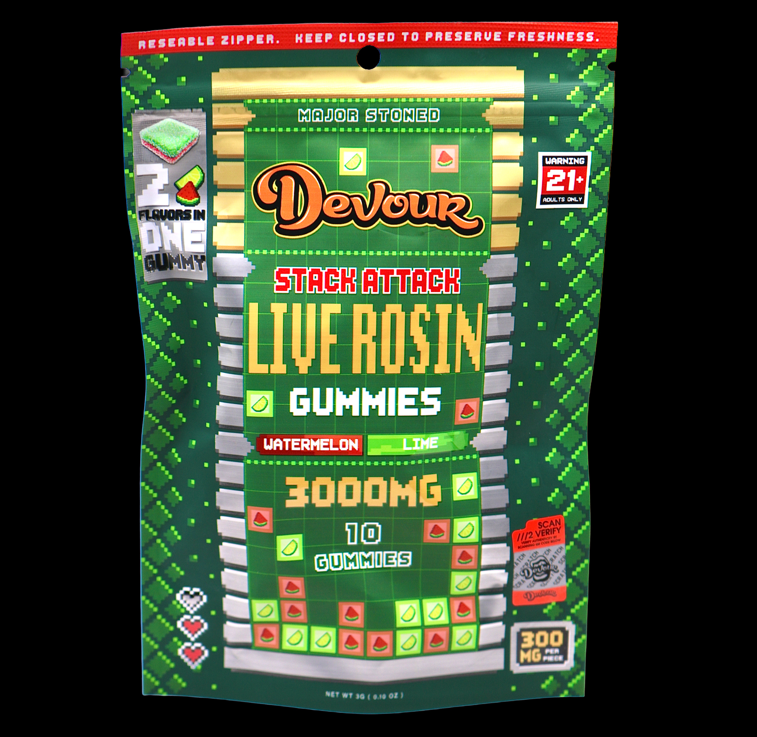 Devour – Watermelon Lime Stack Attack Live Rosin Gummies (3000MG)